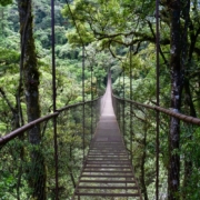ハイキングするのはLa Amistad Friendship International Parkといって、コスタ・リカとパナマにまたがり、両国が共同管理している自然公園だ。渡る吊り橋は全部で6つ。最初の橋の高さは40m、長さは135m。