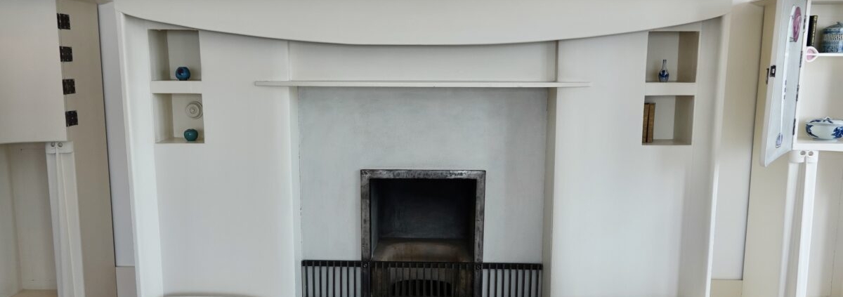 こちらは応接間の暖炉。マッキントッシュは日本文化から大きな影響を受けていた。マントルピースの上には日本絵が飾られている。