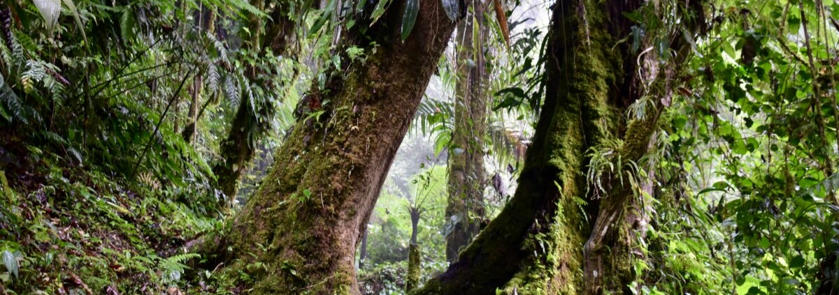 朝、出発しようとしたら霧雨が降って来た。「雨だよ。どうする?」「構わん。行くぞ」。夫は雨でも実行するという。娘も怯むことなく、「行くしかないよ」と言うので出発することにした。6月のパナマは雨季である。雨季にも小雨季と大雨季があり、今は小雨季だからそんなにザアザア降られることはないだろうと思っていたのだが、Palo Altoに到着してからずっと霧雨が降ったり止んだりしている。後から知ったことには、これは雨季だからというよりもPalo Altoは常に雨がちなのだそうだ。ボケテタウンから3kmも離れていないが、熱帯雲雨林の入り口に位置していて霧雲がかかる範囲にある。だから、ボケテタウンでは晴れていてもPalo Altoまで北上すると急にシトシト雨が降ることが多いようだ。