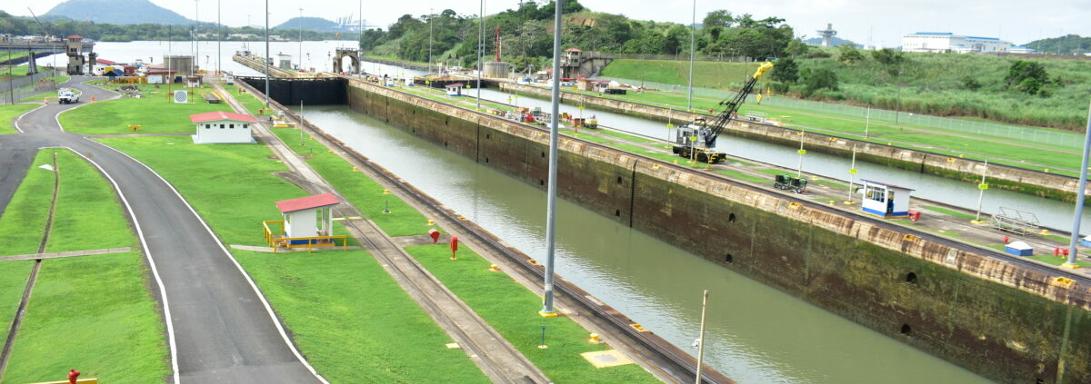 パナマ運河は2016年に拡張工事が行われ、このミラフローレス閘門のやや南西に新たにココリ閘門が作られた。写真の水路は古い狭い方で、ココリ閘門の方の水路はもっとずっと広いらしいけれど、残念ながらビジターセンターの展望台からはほとんど見えない。新しい水路を見学するなら太平洋側ではなくカリブ海側のアグア・クララ閘門のビジターセンターに行くといいようだ。