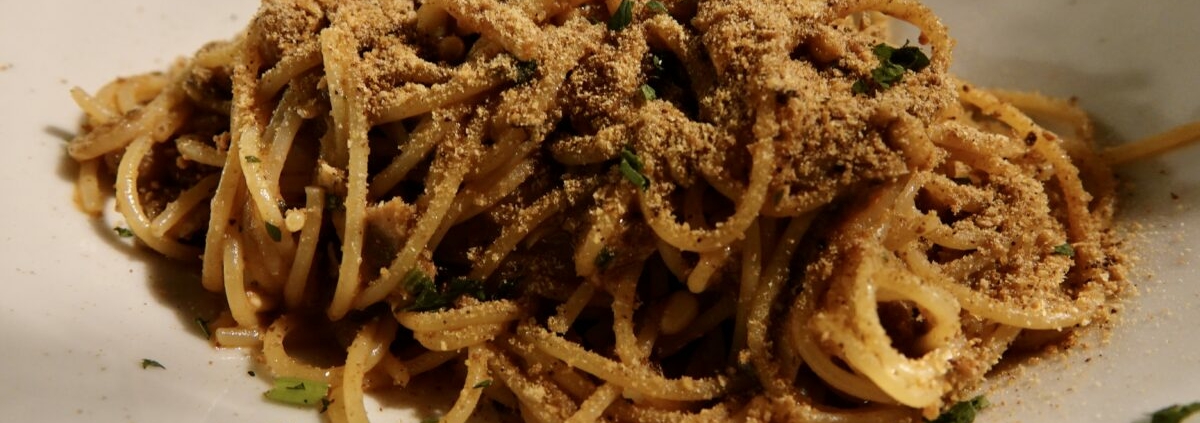 一番気に入ったのは「パスタ・コン・レ・サルデ (Pasta con le Sarde)」というイワシのパスタ。見た目は地味だけれど、実に美味しいシチリアの定番料理。イワシの他にアンチョビ、干し葡萄やフェンネル、松の実などが入っていて、チーズではなく炒ったパン粉がかかっている。この意外な組み合わせが絶妙なハーモニーを生み出していて旨い!お店によって味がかなり違うので、食べ比べするのが幸せだった。