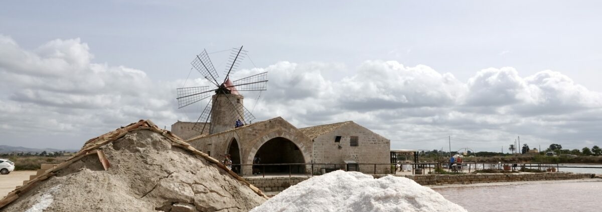 夜行フェリーでパレルモ港から出発することにしたので、あと丸一日ある。シチリア島の西海岸、トラパニ(Trapani)からマルサラ(Marsala)にかけて広がる天日塩田を見てから帰ることにした。西シチリアの沿岸部には3000年に渡る採塩の伝統がある。交易の民フェニキア人がシチリアに入植した時代から、塩は「白い金」と呼ばれて珍重されていた。近代以降の都市化に伴う環境破壊や1965年にこの地方を襲った大洪水によって塩田が被害を受けたことなどにより採算が取れなくなり、今では大規模な採塩産業は廃れてしまったが、塩沼は自然保護区に指定されていて、小規模ながら伝統的な塩づくりが続いているという。保護区の一つ、 Naturreservats Salinen von Trapani und Pacecoにある塩博物館(Museo del sale)に立ち寄ってみることにした。