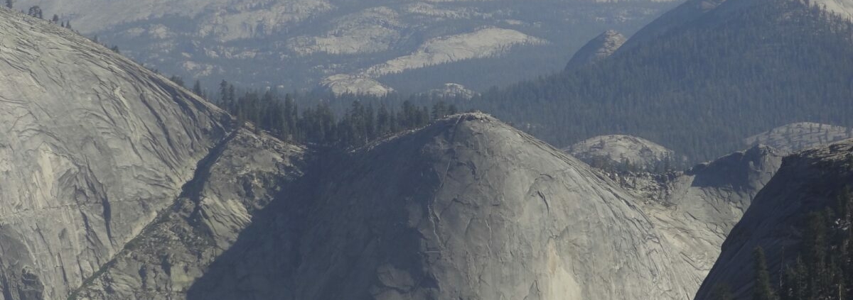 ヨセミテ国立公園にはハーフドーム以外にもボコボコした花崗岩ドームがたくさんある。このような変わった地形はどうやってできたんだろう?この景色を見た当時はまだ地質学にそれほど興味を持っていなかったので、「すごい景色だなあー」と圧倒されたものの、それで終わってしまった。今さらだけど、成り立ちを調べてみよう。