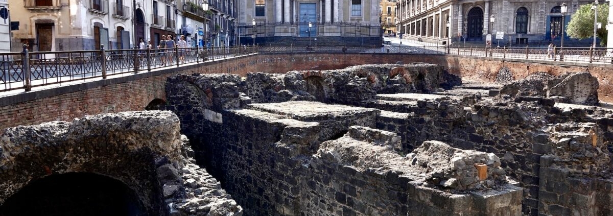 カターニアの町は17世紀末にエトナ山の噴火で破壊されたと先に書いたが、旧市街のあちこちにギリシア時代や古代ローマ時代の遺跡が見られる。