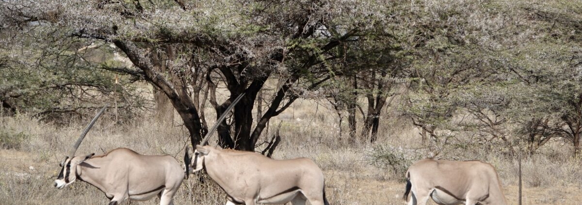 オリックスの群れがいた。向こうに見えるのはアミメキリン?